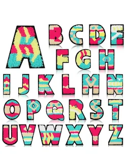 Термонашивки алфавит разноцветные узоры нашивки 26шт