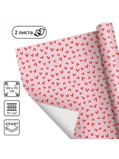 Бумага упаковочная крафтовая «Красные сердечки», 2 листа