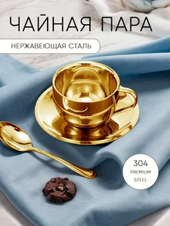 Чайная пара набор блюдце и чашка нержавеющая сталь