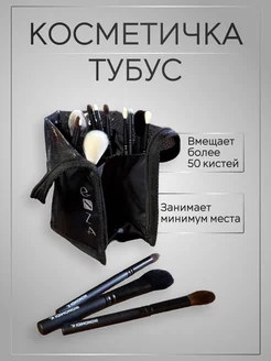 Косметичка дорожная черная на молнии для карандашей и кистей