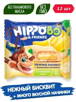 Бисквитное пирожное с банановой начинкой HippoBo 24 шт 32г