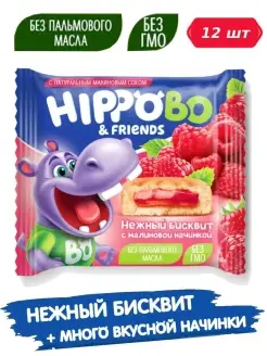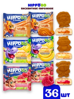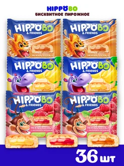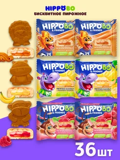 Бисквитное пирожное Hippo Bo (малина сгущенка банан) 36 шт