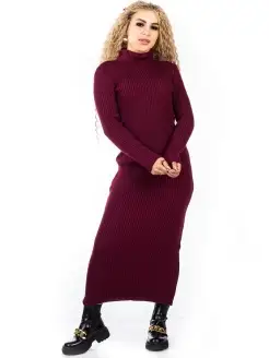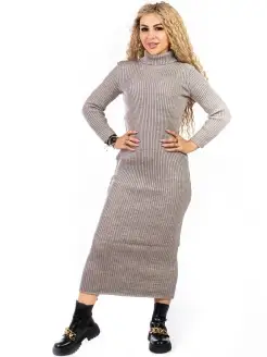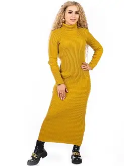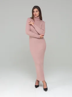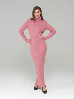 Платье лапша водолазка вязаное длинное макси теплое стильное