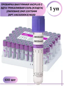 Пробирка вакуумная VacPlus ЭДТА трикалиевая соль 2мл 13х75мм