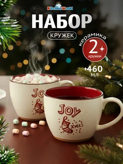 Кружки новогодние керамические Joy 460мл набор 2шт