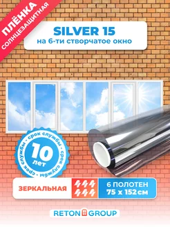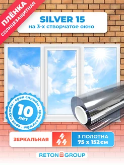 Зеркальная пленка на окно Silver 15 75х152см - 3 шт