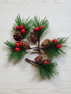Ветки еловые сосновые новогодние с ягодками и шишкой