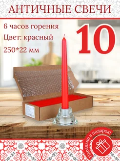 Свечи античные конические красные 22*250 мм 6 часов 10 шт
