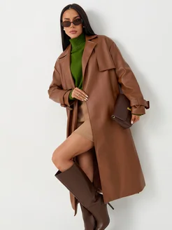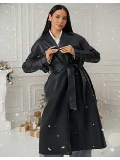 Плащ кожаный тренч длинный