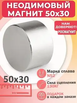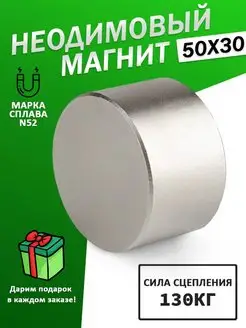 Неодимовый магнит диск 50х30 мм N52 мощный бытовой сильный