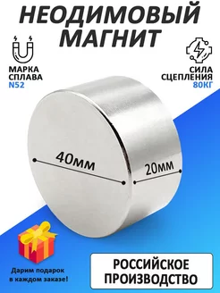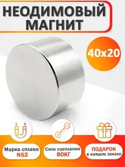 Неодимовый магнит диск 40х20 мм N52 мощный бытовой