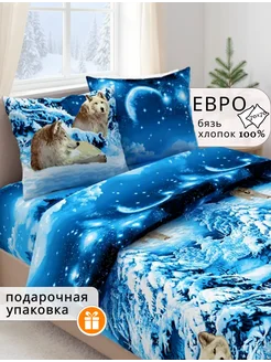 Новогоднее постельное белье 2 спальное бязь с евро простыней