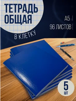 Общая тетрадь А5 в клетку 96 листов 5 штук бумвинил