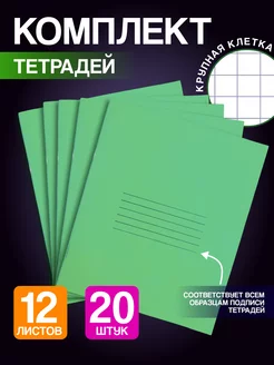 Тетрадь школьная в большую клетку без надписей 12 л, 20 шт