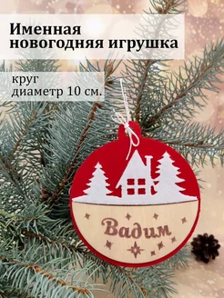 Новогодний деревянный именной елочный шарик Вадим