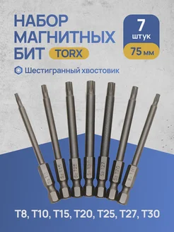 Набор бит TORX 75 мм, магнитные биты для шуруповерта 7шт
