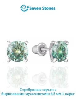 Серебряные серьги с бирюзовыми муассанитами 1 карат 6,5 мм