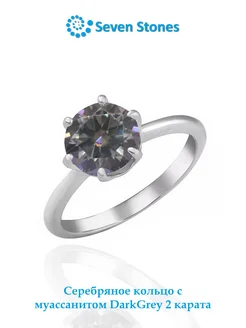 Серебряное кольцо с муассанитом Dark Grey 2 карата, 8 мм