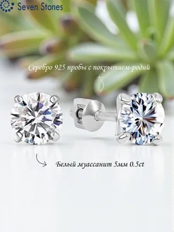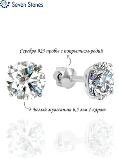 Серебряные пусеты с белыми муассанитами 6,5 мм