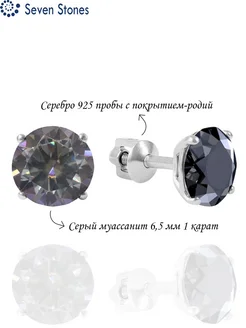 Серебряные серьги с муассанитами Dark Grey 6,5 мм