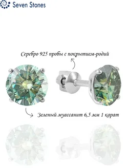 Серебряные серьги с зелеными муассанитами 6,5 мм