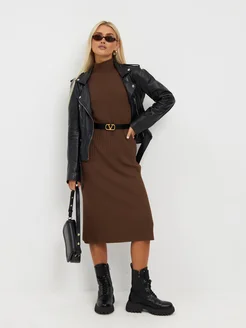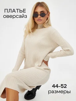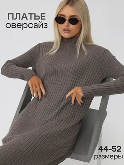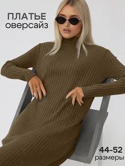 Платье лапша трикотажное вязаное в рубчик