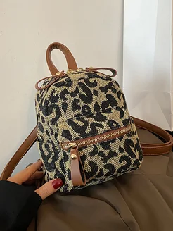 Сумка рюкзак леопардовый женский мини тканевый