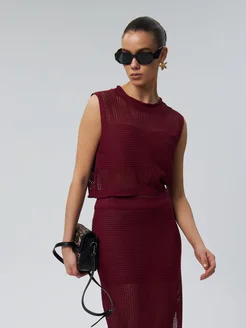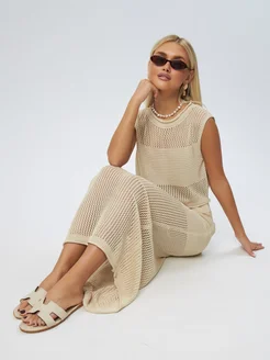 Пляжный костюм двойка женский вязаный с юбкой