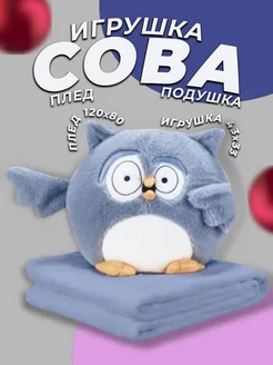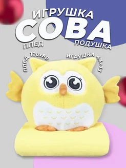 Игрушки мягкие сова с пледом 3в1 подушка детям