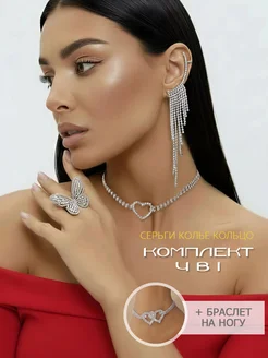 Набор бижутерии-Колье на шею-браслет-серьги-кольцо