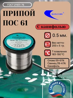 Припой с канифолью ПОС 61 d 0,5 мм 200 гр