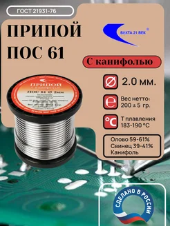 Припой с канифолью ПОС 61 d 2,0 мм 200 гр