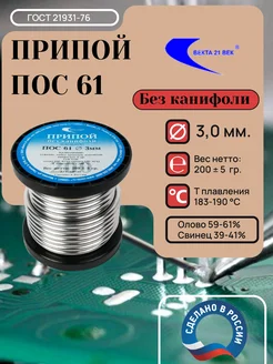 Припой без канифоли ПОС 61 d 3,0 мм 200 гр