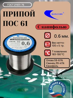 Припой с канифолью ПОС 61 d 0,6 мм 100 гр