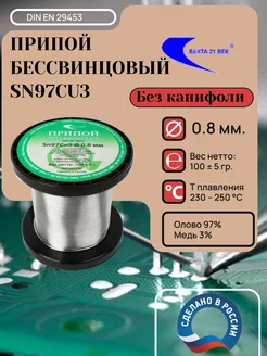 Припой бессвинцовый Sn97Cu3 d 0,8 мм 100 гр без канифоли