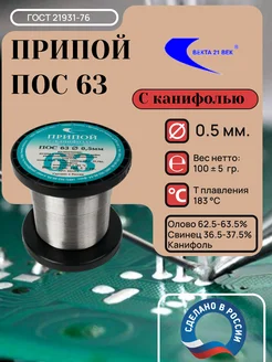 Припой с канифолью ПОС 63 d 0,5 мм 100 гр