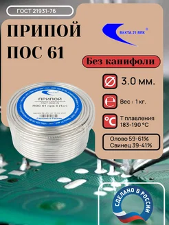 Припой без канифоли ПОС 61 d 3,0 мм 1 килограмм