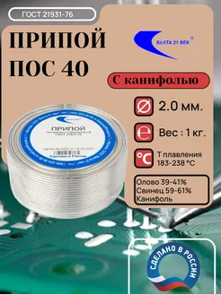 Припой с канифолью ПОС 40 d 2.0 мм 1 кг
