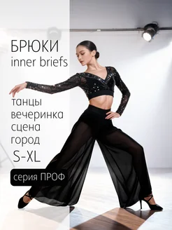 Брюки с трусами палаццо из сетки стрейч прозрачные широкие