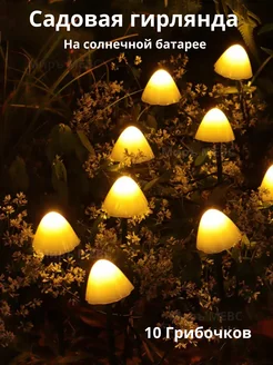 Уличная гирлянда растяжка на солнечной батарее садовая грибы