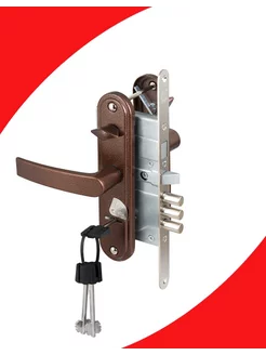 Замок врезной сувальдный с защёлкой в комплект ручкой 77311