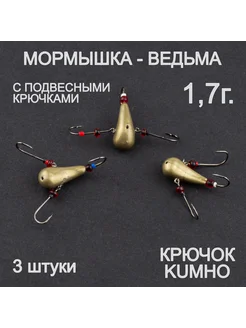 Мормышка - Ведьма с подвесными крючками 1,0г. 3шт