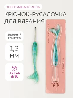 Крючок с ручкой-русалочкой, зеленый глиттер, 1,3 мм