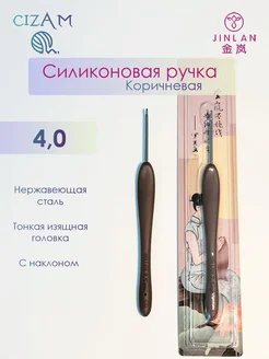 Крючок для вязания с силиконовой ручкой, коричневый 4,0 мм