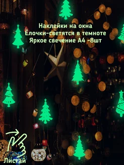 Ёлки наклейки новогодние, светятся в темноте