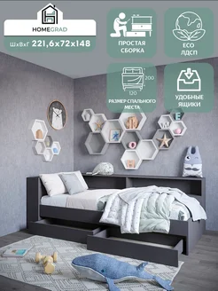 Кровать с прикроватным блоком с ящиками Ksenia 120х200