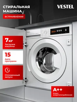 Встраиваемая стиральная машина 1200 об мин, 7 кг