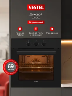 Встраиваемый духовой электрический шкаф 69л, гриль, таймер