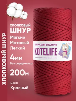 Шнур хлопковый 4мм для вязания и макраме 200м Красный
