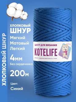 Шнур хлопковый 4мм для вязания и макраме 200м Синий